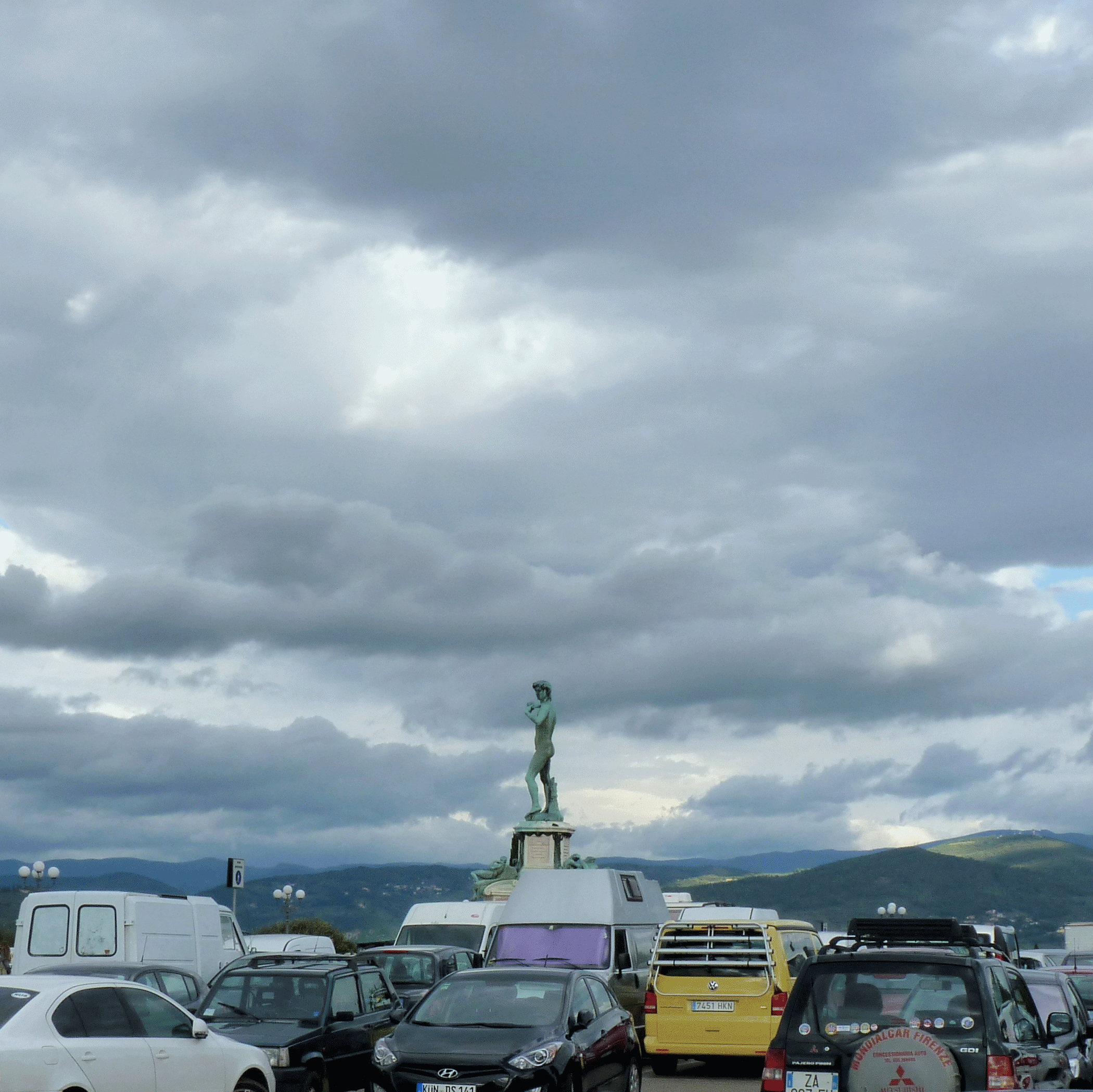 Auf der Piazza, draußen, steht nun David,