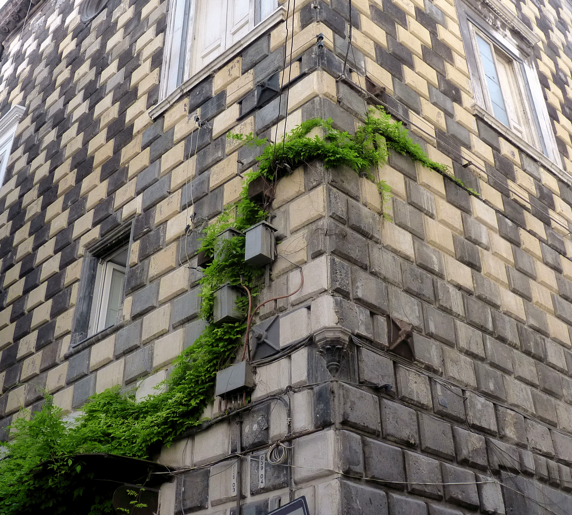 Ein Block rechts der Palazzo, düster,